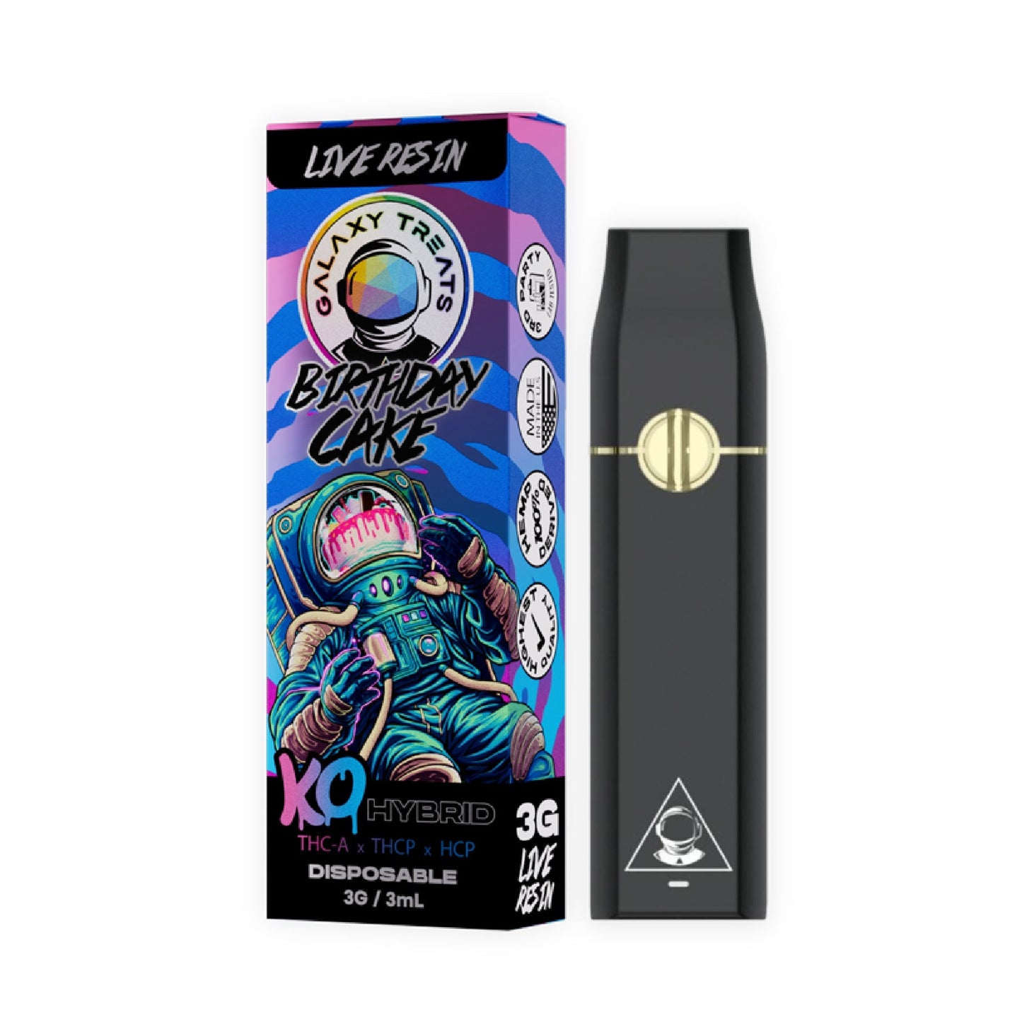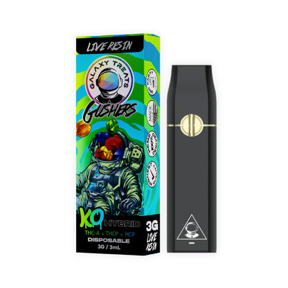 Ready to take your sesh to another galaxy? This Galaxy Treats KO Live Resin vape is absolutely gas! Packed with 3000mg of that knockout blend featuring THC-A, THC-P, and HCP, this cosmic crusher delivers hits that'll have you floating among the stars. The live resin extraction keeps all those dank terpenes intact, giving you flavor that's out of this world. Whether you're vibing with Birthday Cake, getting lifted with Gushers, or cruising with Pineapple Express, each puff is a one-way ticket to your happy place. This rechargeable beast is perfect for the modern stoner who wants top-shelf potency without the hassle. Just inhale and let Galaxy Treats launch you into orbit!