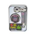 The Stoner On The Go Kit is an all-purpose set that will help you carry everything you need for an excellent smoking sesh absolutely anywhere. If you like smoking on hikes, at concerts, parties, or just anywhere your heart fancies, you need to get this kit. Both the mini grinder and the metal pipe feature everyone's favorite leaf in a variety of colors, and the it even comes with 5 pipe screens that help keep the piece clean and keep you from accidentally sucking in ash. The pipe also has a screw-off lid with a hole that makes toking on the go even more convenient.