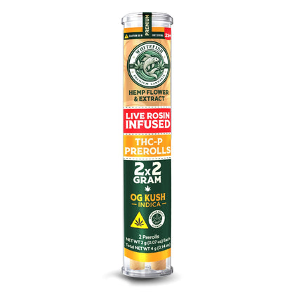 Ready to swim upstream to the dankest vibes? White Fish Live Rosin THC-P Pre-Rolls are here to elevate your sesh to oceanic depths! These aren't your average pre-rolls – we're talking two fat 2-gram joints packed with live rosin extracted THC-P that hits like a tidal wave of relaxation. Each pre-roll is carefully crafted with premium indoor flower and infused with that buttery live rosin goodness that preserves all those precious terps and cannabinoids. Whether you're riding solo or sharing with your crew, these pre-rolls deliver consistent, potent hits that'll have you floating on cloud nine. The clean-burning RAW papers ensure every puff is smooth as silk, letting that live rosin flavor shine through. Perfect for when you need to catch some serious waves of chill – just light up, take it slow, and let White Fish guide you to your happy place!